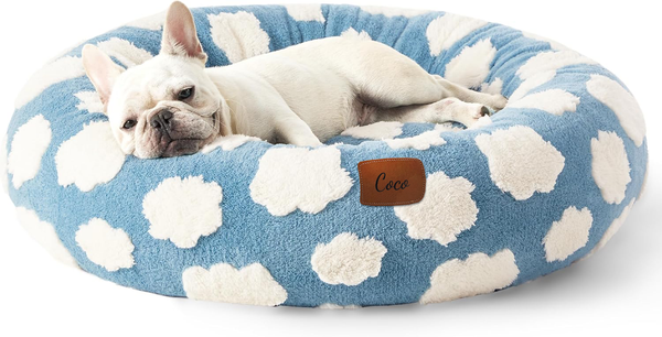 Personalized plush blue cloud pet bed, Donut style cat and dog bed