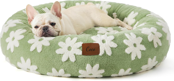 Personalized plush green flower pet bed, Donut style cat and dog bed